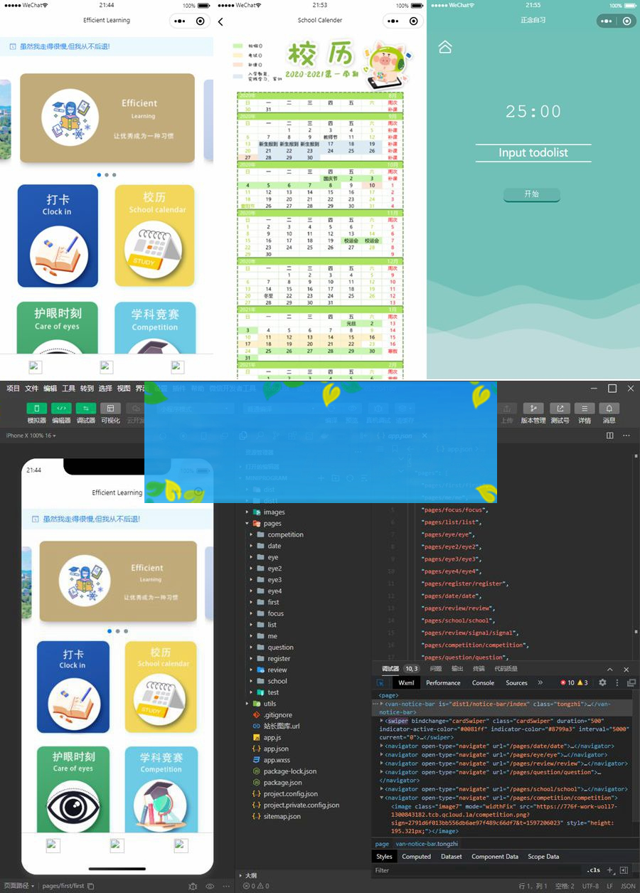 该小程序源码类目中中包含了复习资料、学习共享、正念自习功能,护眼精灵、每日打卡和竞赛资讯等功能,目前功能如下,后期将会迭代更新,完善与开发更多具有新特性的功能。