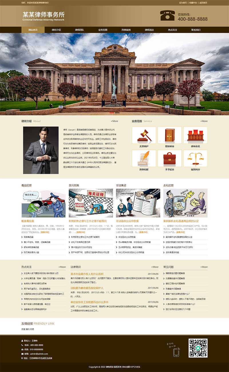 PbootCMS内核开发的网站模板,该模板适用于法律资讯网站、律师事务所网站等企业,当然其他行业也可以做,只需要把文字图片换成其他行业的即可;