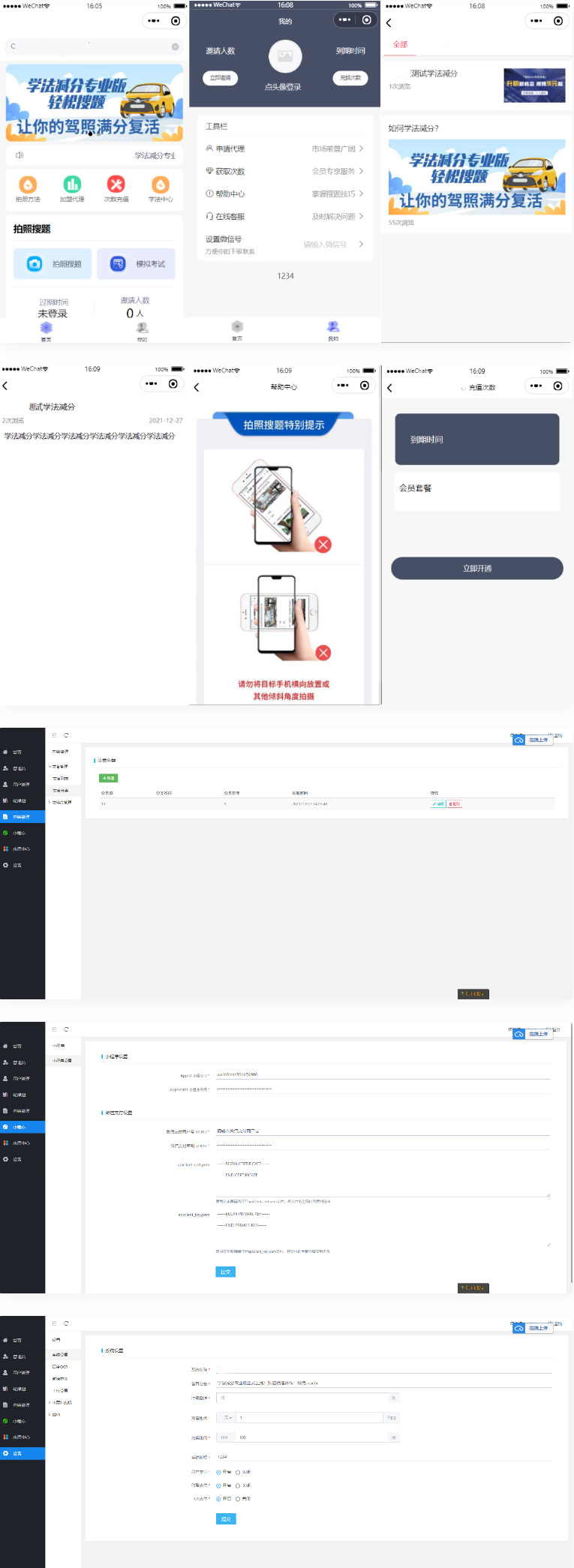 运营版学法减分小程序源码,后台基于thinkphp的微信小程序源码,某宝1000买的学法减分助手小程序前端源码+后端教程。