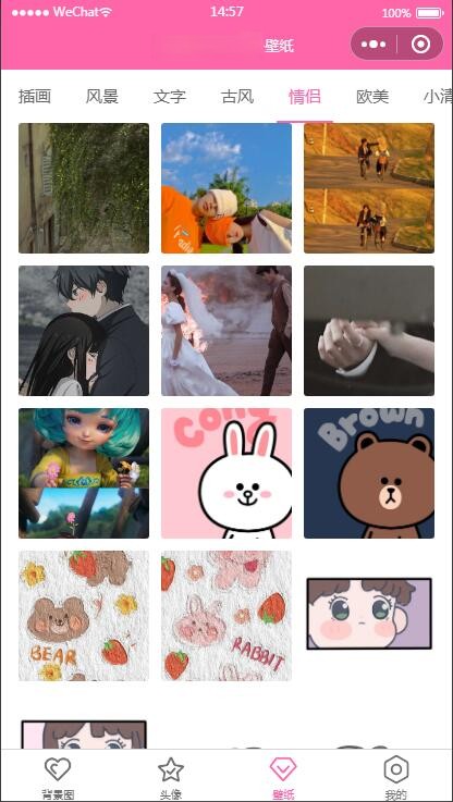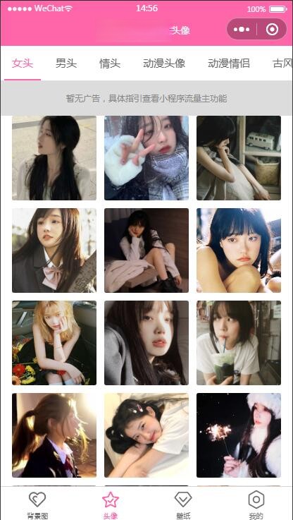 【已测】云开发版粉色ui微信小程序源码/背景图/头像/壁纸/小程序源码 带流量主