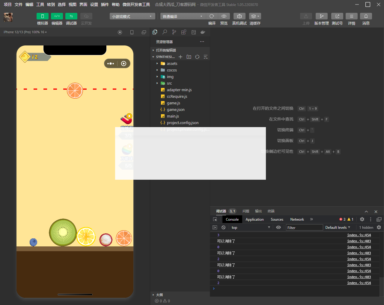这是一款云开发版的合成大西瓜小游戏微信小程序源码,微信游戏小程序源码。