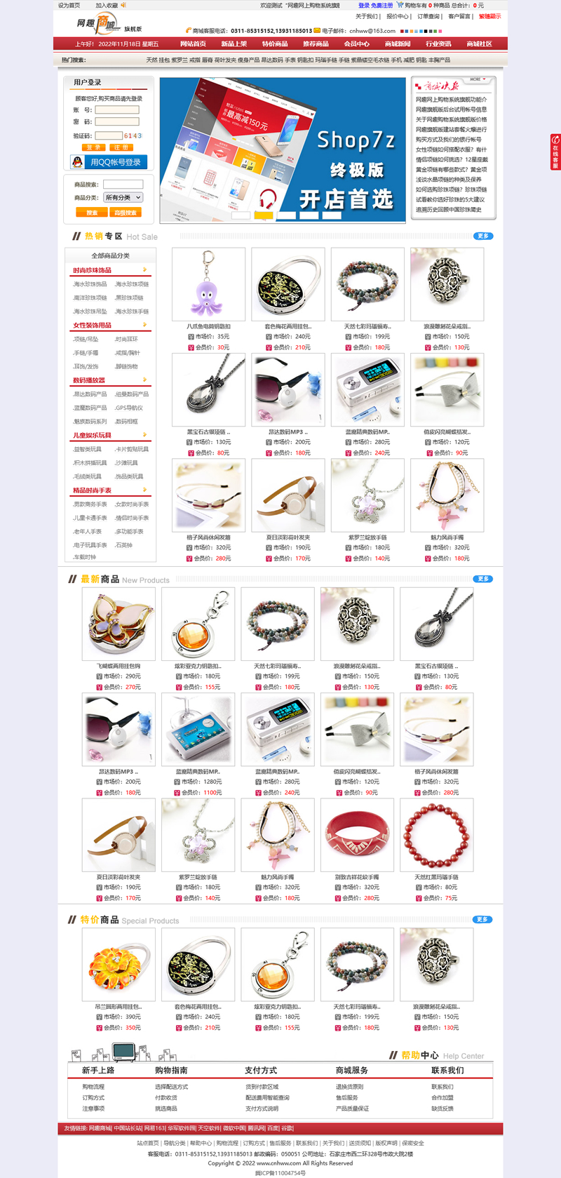 网趣系统后台菜单分布合理规范,动感时尚的管理菜单美感十足,商品展示页面同样如此,如鼠标指向热门商品,可依次滑动展示商品的图片及价格信息,商品介绍、其他说明与顾客评论则鼠标点后在对应选项卡上展示,支持商品大图的鼠标指向即刻展示功能,同是增加了价格区间搜索及注册用户检索功能,旗舰版独有的导航购物车功能可在商城任意位置实时显示购物车信息,新增的淘宝数据包批量导入更加方便实用。