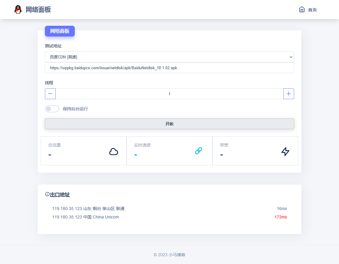 在线多线程检测网速流量HTML源码,主要测试您的网速,多地查询您的IP地址,同时具备网络延迟实时检测,流量杀手,流量消耗器,流量消失器,支持定量完成,支持多线程,适配iOS后台运行,网页由原生js编写,直接部署在静态存储服务即可,非常实用在线测速流量的小工具。