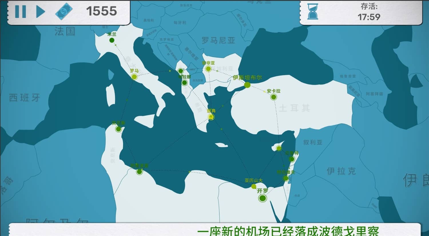 在各个国家和城市发展你自己的运输网络:开辟新的路线,购买新的飞机并升级它们,增加机场的容量!