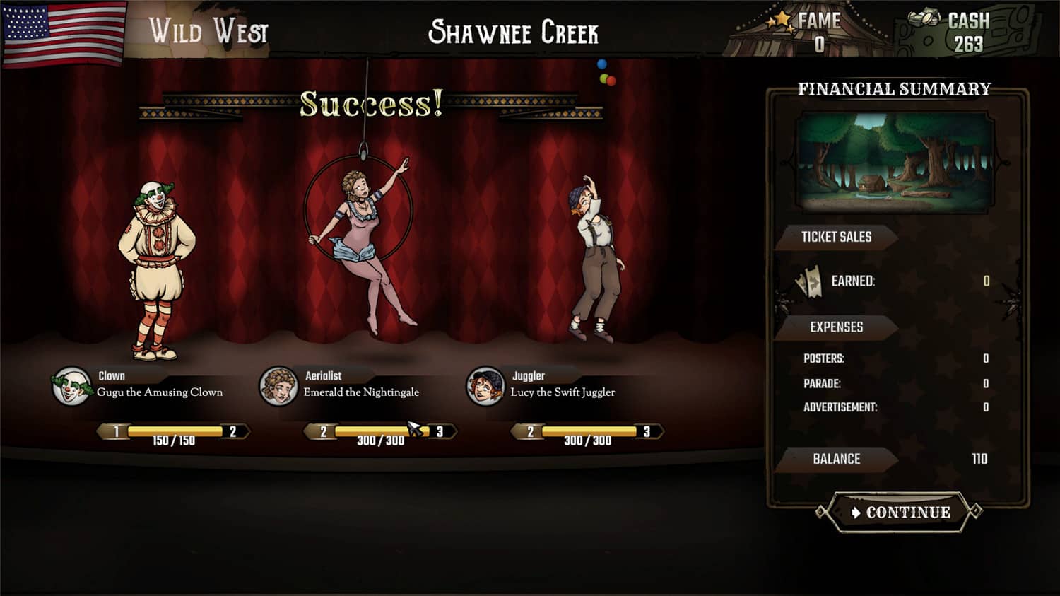 《惊奇美国马戏团》是一款带有资源管理、大亨和探索元素的单人牌组构建游戏。雇佣各自拥有一套专属卡牌的艺术家们,巡游镀金时代的美国,邂逅名人,完成任务——同时成为地球上最伟大的表演家!