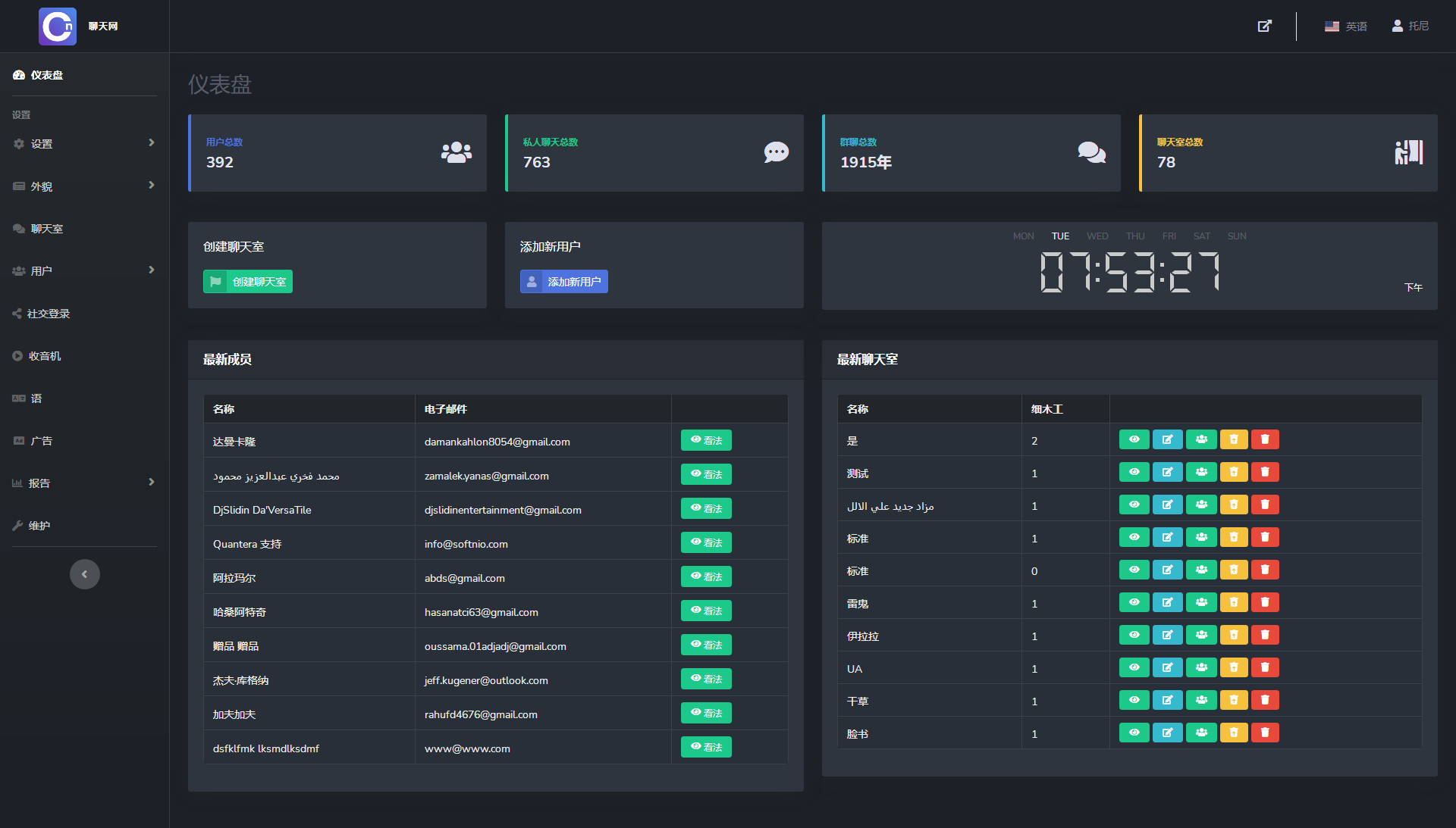 国外一款多用户聊天室源码,程序支持同时创建多个聊天室,全站响应式完美适应pc和移动设备,界面的设计现代且用户友好,将使您的网站或应用无缝地成为功能丰富的社区和社交平台。程序内置英语,可轻松翻译为多种语言。