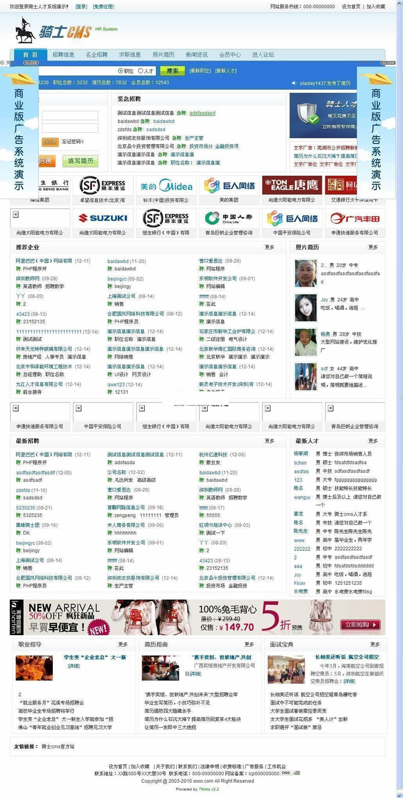 骑士cms人才系统是一项基于PHP+MYSQL为核心开发的一套免费 + 开源专业人才招聘系统。软件具执行效率高、模板自由切换、后台管理功能方便等诸多优秀特点。全部代码都为骑士网络原创,有着完全的知识产权。凭借骑士网络的不断创新精神和认真的工作态度,骑士人才系统已成国内同类软件中的最好用的人才系统。