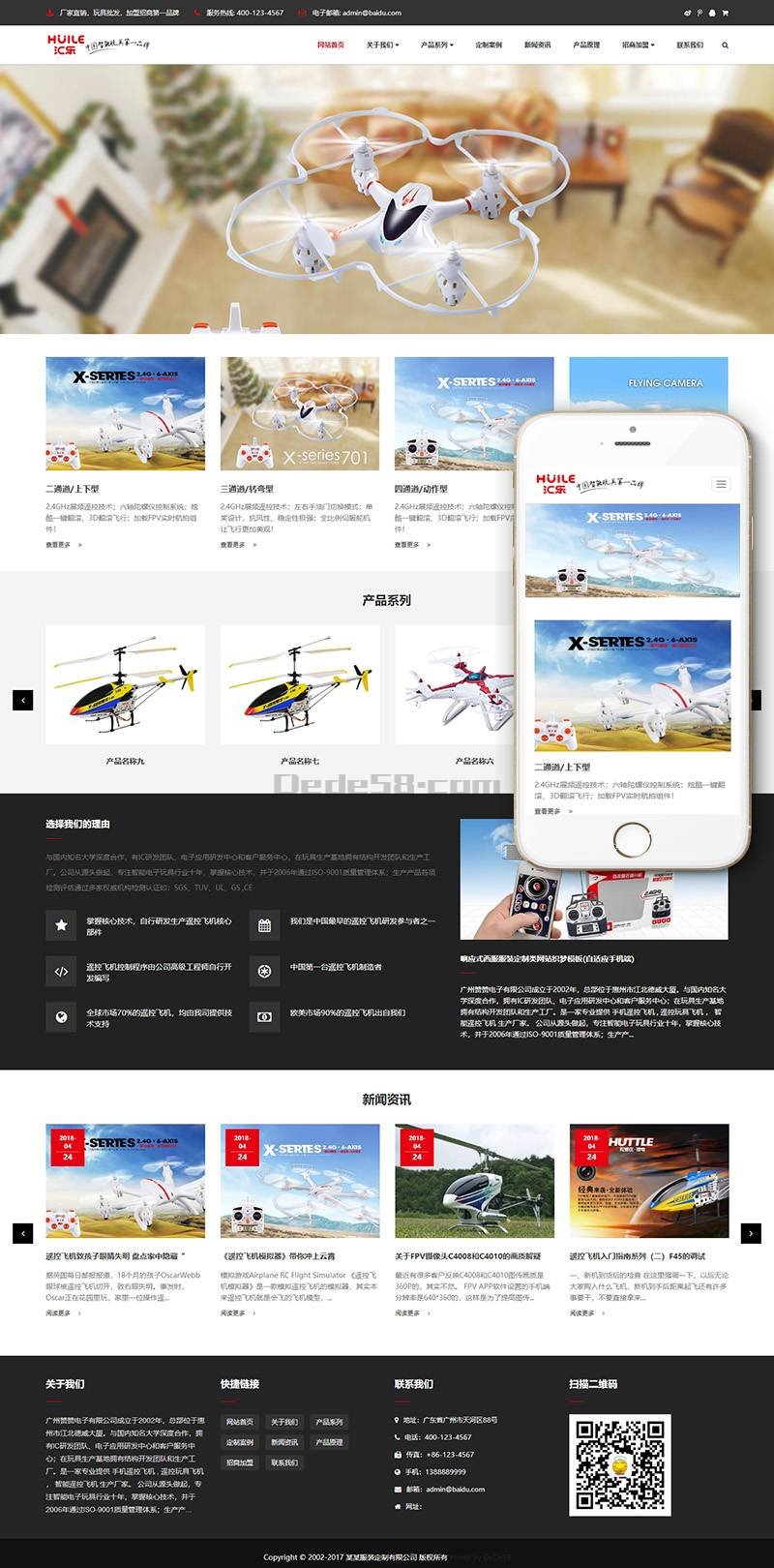 织梦最新内核开发的模板,该模板属于企业通用类、无人机、智能电子玩具、遥控功能车、手机遥控飞机、遥控玩具飞机类企业都可使用。