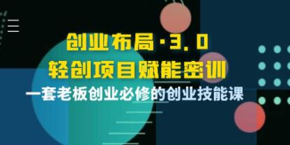 《创业布局》3.0轻创项目赋能密训。这是一套老板创业必修的创业技能课,筛选好项目的避坑指南,告诉你如何利用好资源赋能。让你了解当下创业市场的黑马项目,学会如何审核一个项目的好坏,能够自主在创投项目中避坑避雷,收获当下比较前沿的商业思维。