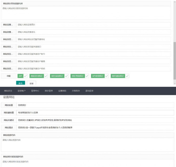 自定义设置探针页面,探针功能,QQ分享,通知邮箱等功能。