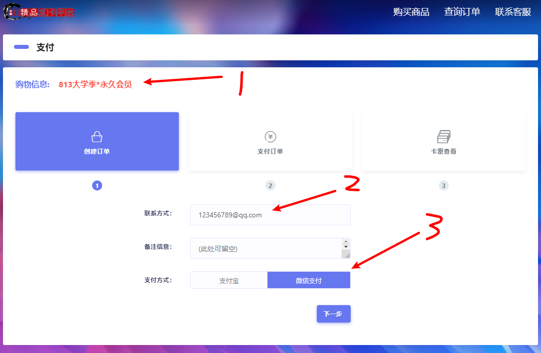 四、确认好会员信息,添加邮箱联系方式,选择支付方式,微信和支付宝都可以哦