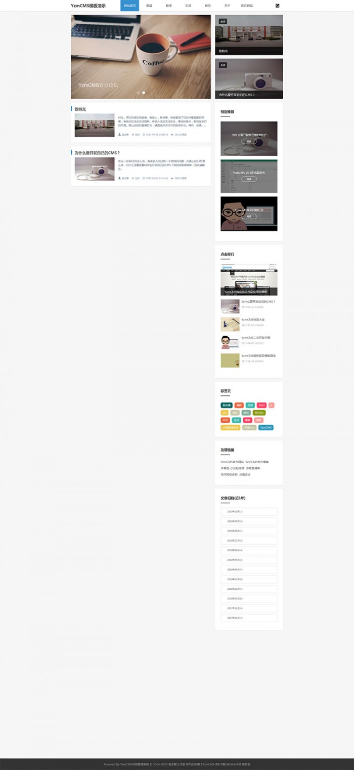 YZMCMS漂亮大气简洁响应式博客模板,内附安装方法和模板说明 声明:本站所有文章,如无特殊说明或标注,均为本站原创发布。任何个人或组织,在未征得本站同意时,禁止复制、盗用、采集、发布本站内容到任何网站、书籍等各类媒体平台。如若本站内容侵犯了原著者的合法权益,可联系我们进行处理。